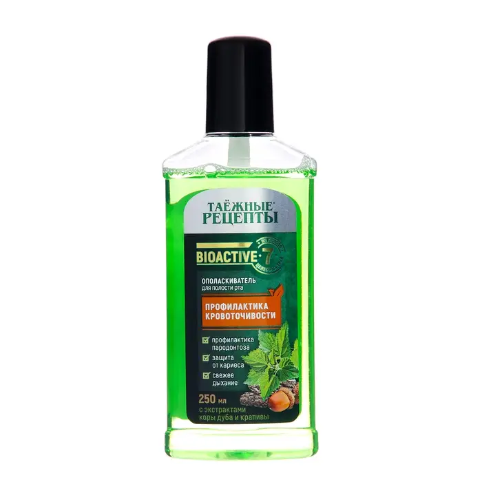 Ополаскиватель для рта "Таёжные рецепты. Экстракт коры дуба и крапивы" - это натуральное средство для ухода за полостью рта, основанное на традиционных рецептах сибирской тайги.