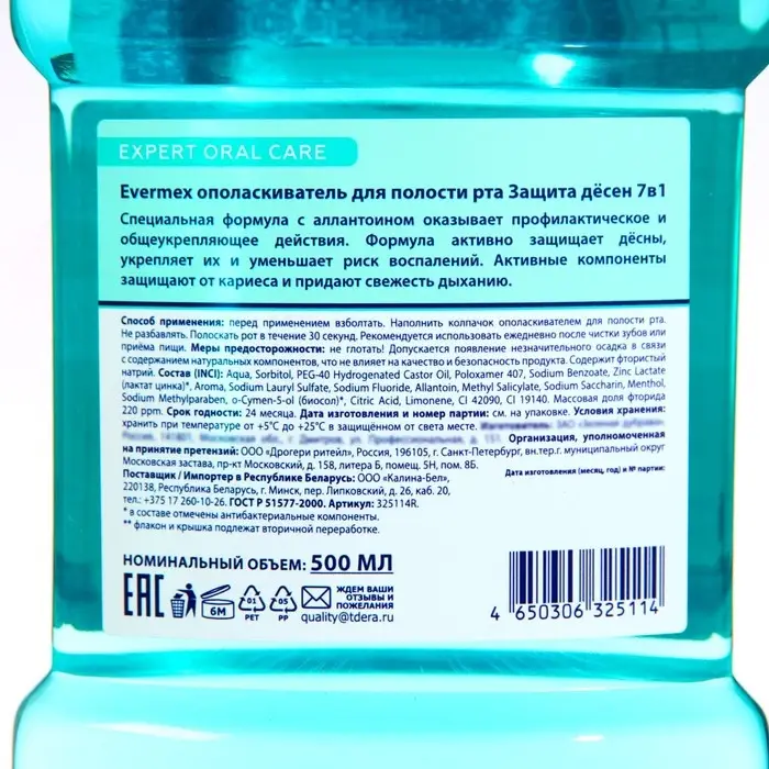 Ополаскиватель для рта Evermex "Защита дёсен 7в1", 500 мл
