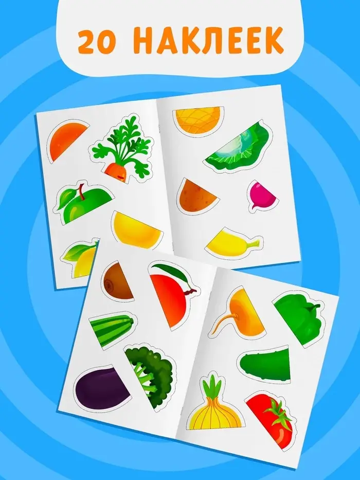 Наклейки - половинки «Фрукты и овощи», 20 наклеек