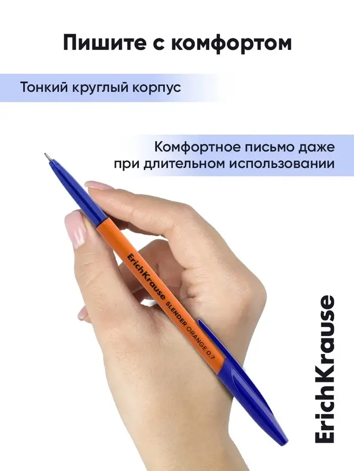 Набор ручек шариковых ErichKrause Slender Stick Orange, SuperGlide, 4 штуки, уз 0.7 мм, син