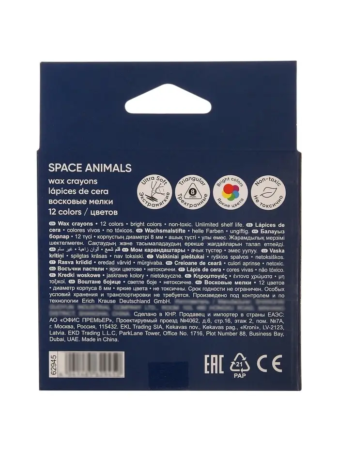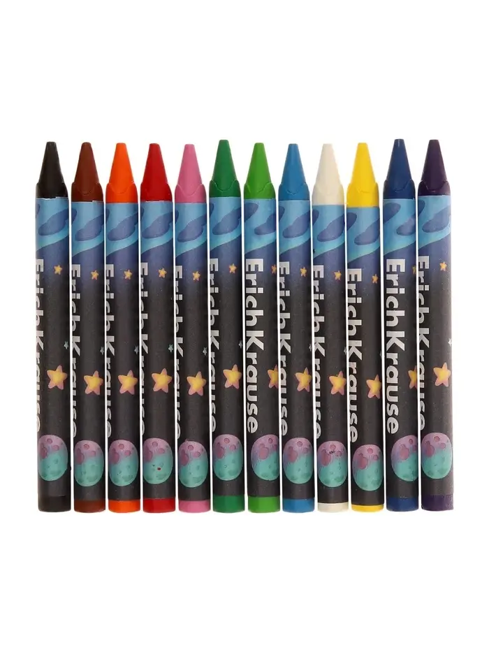 Восковые мелки 12 цветов, ErichKrause Kids Space Animals, трёхгранные