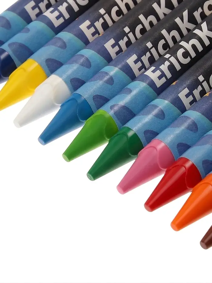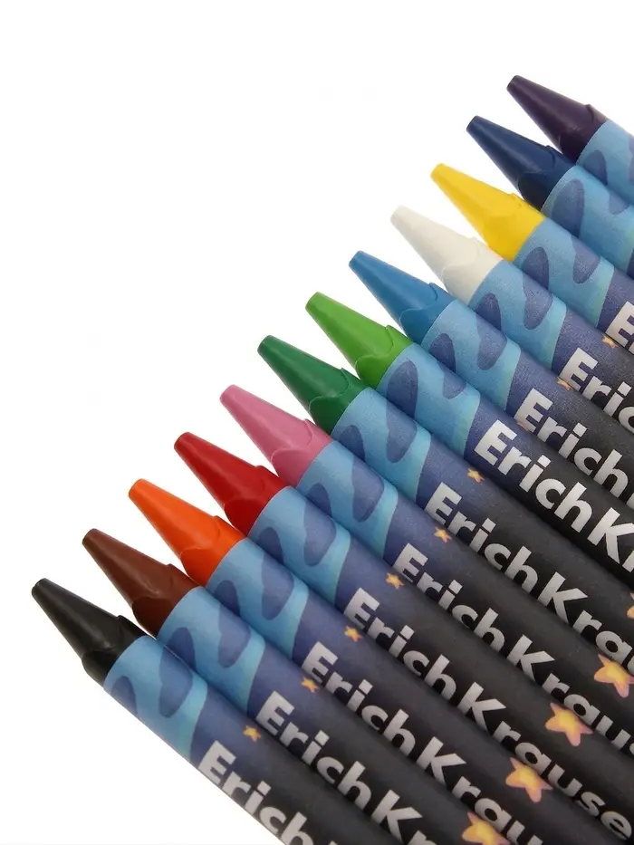 Экстрамягкие восковые мелки для детей. Корпус трехгранный диаметром 8 мм, предварительно заточен, обернут в бумагу, устойчив к поломкам. Подходят для рисования на разных поверхностях, прекрасно ложатся на бумагу, картон и дерево. Рисунки со временем не теряют яркости.