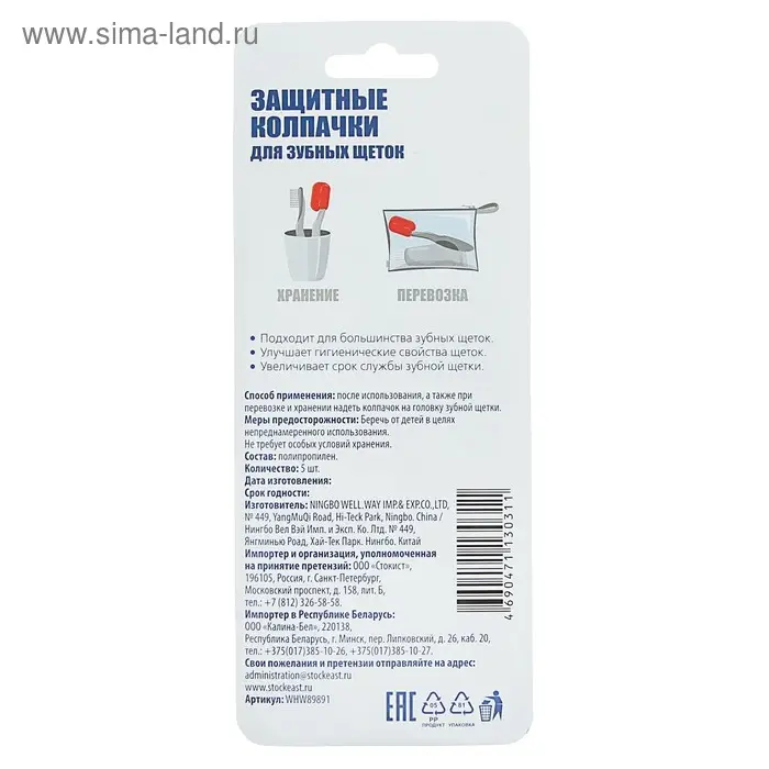 Защитные колпачки для зубных щёток "7 days", 5 шт.