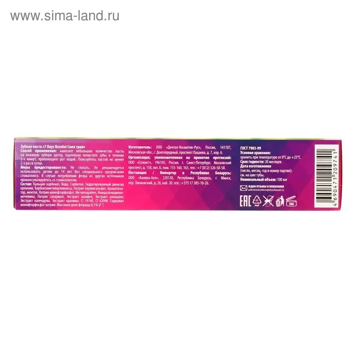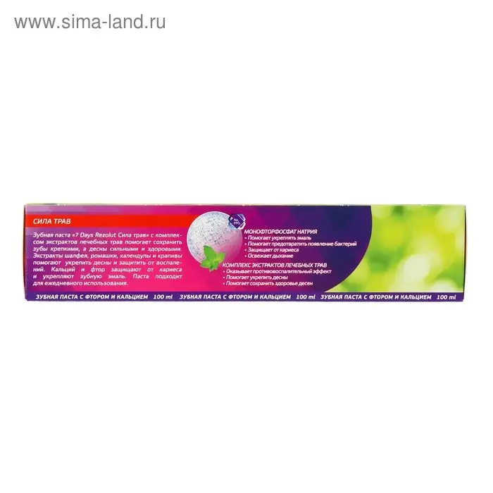 Зубная паста 7 days Rezolut Сила трав для здоровья десен, 100 мл