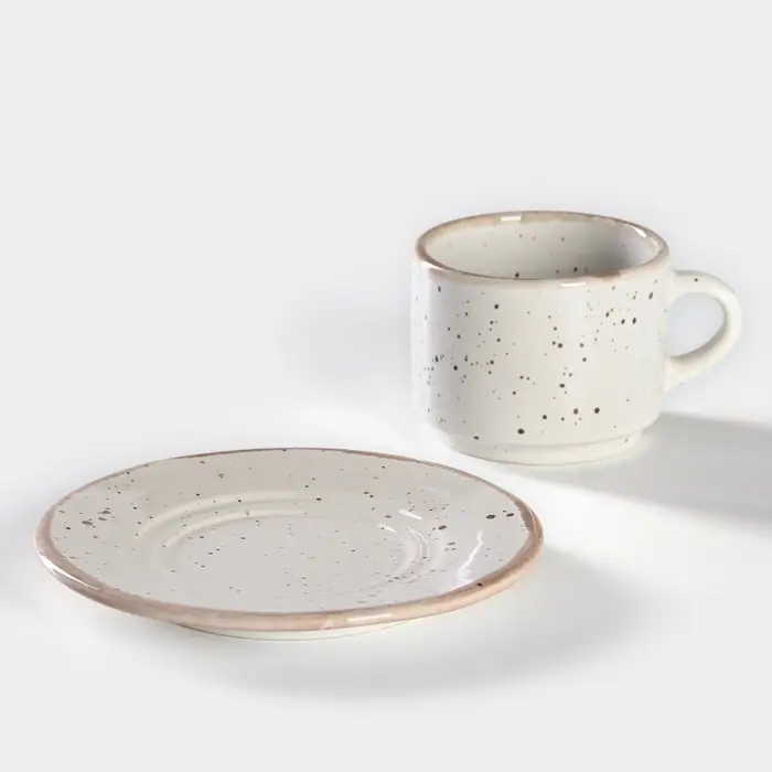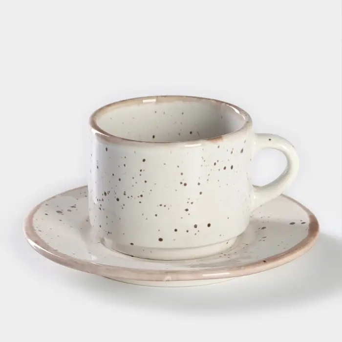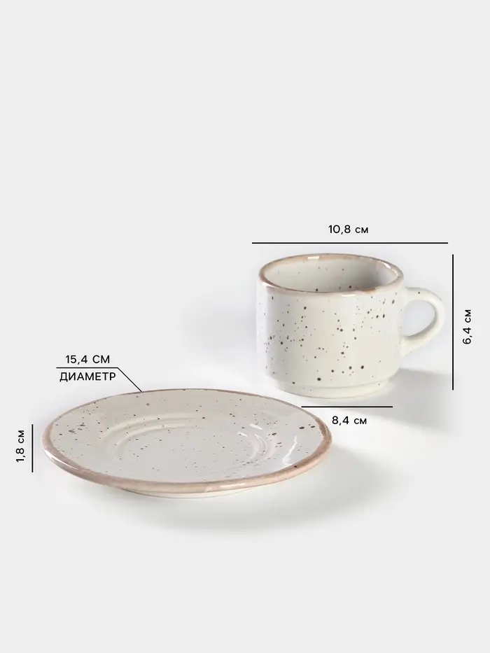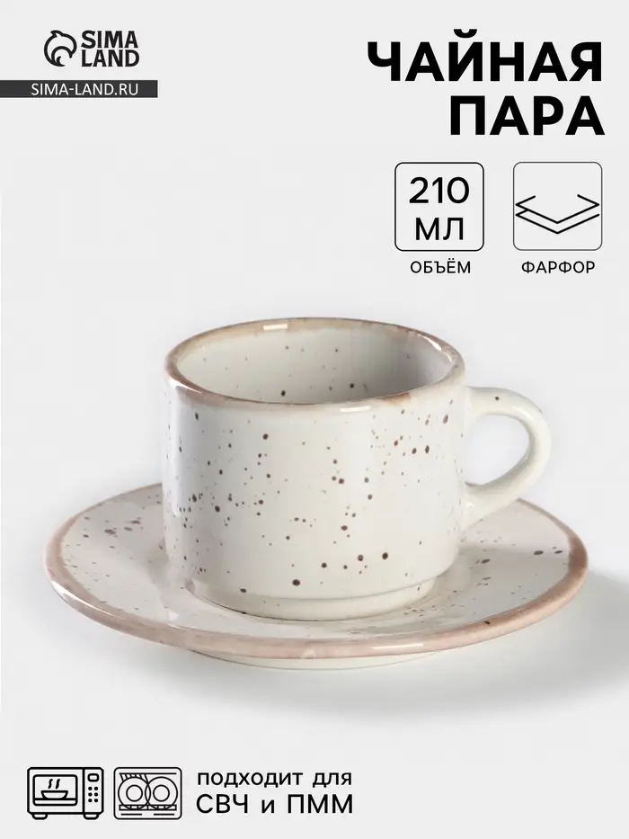 Чайная пара в крапинку — не просто посуда, а ритуал в двух предметах. Чашка объёмом 210 мл и блюдце диаметром 15,4 см составляют пару, которая не требует дополнений: ни подставки, ни ложечки, ни пояснений. Бежевый фон с тонкой деколью не отвлекает — он создаёт фон для самого важного: пара минут тишины, первый глоток утра, разговор без спешки. Это не сервировка. Это граница между “надо” и “хочу”.