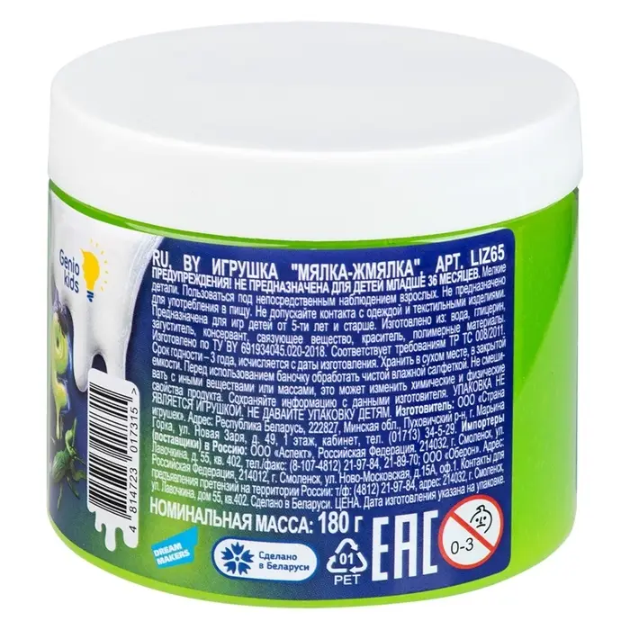 Слайм "Мялка-жмялка", зеленый, с фигуркой, 180 г SLI65