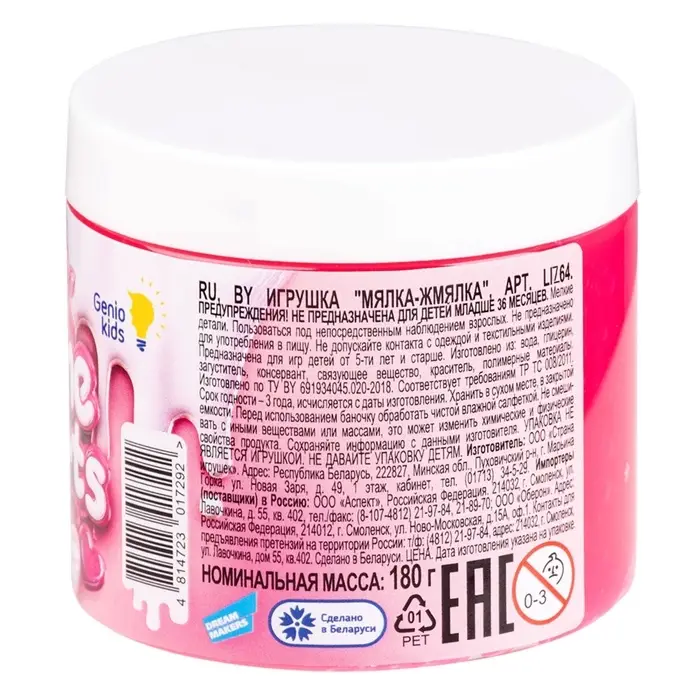 Слайм "Мялка-жмялка", розовый, с посыпкой и фигуркой, 180 г SLI64