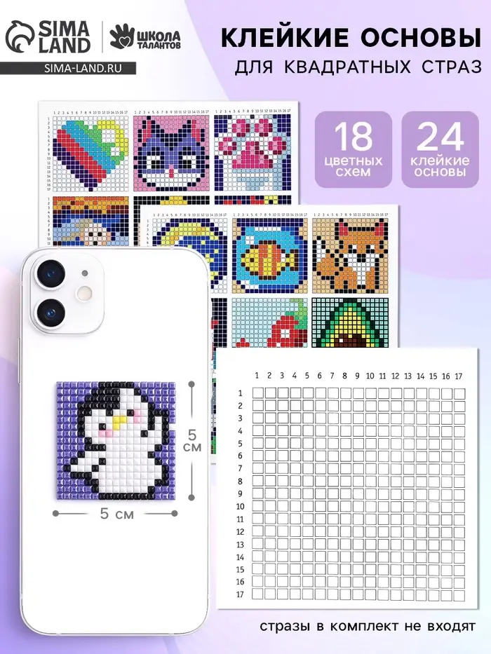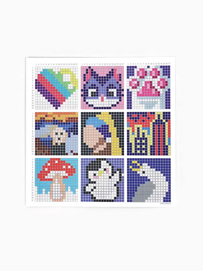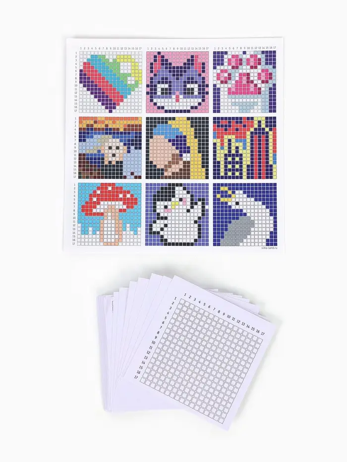 После создания алмазных картин часто остаются лишние стразы — теперь им можно найти применение! На основе с разметкой вы сможете выложить готовый рисунок по схеме из набора и создать красивую мини-картинку.