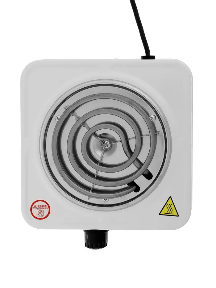 Нагрев осуществляется за счёт открытой спирали, которая быстро выходит на рабочую температуру и обеспечивает стабильный тепловой поток. Диаметр конфорки 140 мм оптимален для небольших кастрюль и сковород, позволяя эффективно готовить и разогревать блюда.