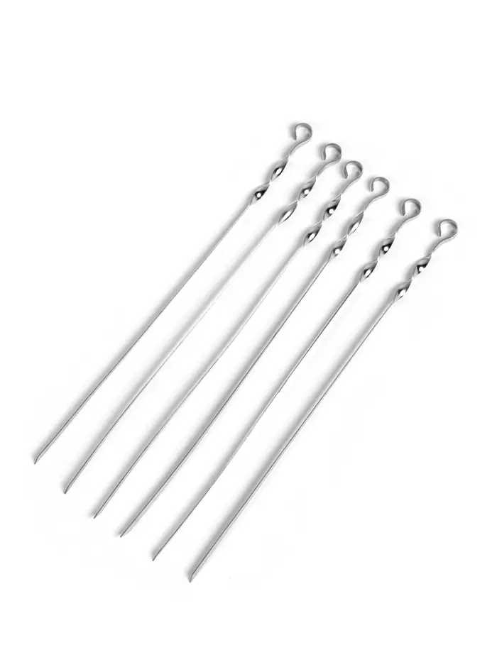 Шампуры изготовлены из нержавеющей стали, устойчивой к коррозии, высоким температурам и механическим воздействиям. Прямая форма обеспечивает удобное размещение продуктов и равномерное приготовление.