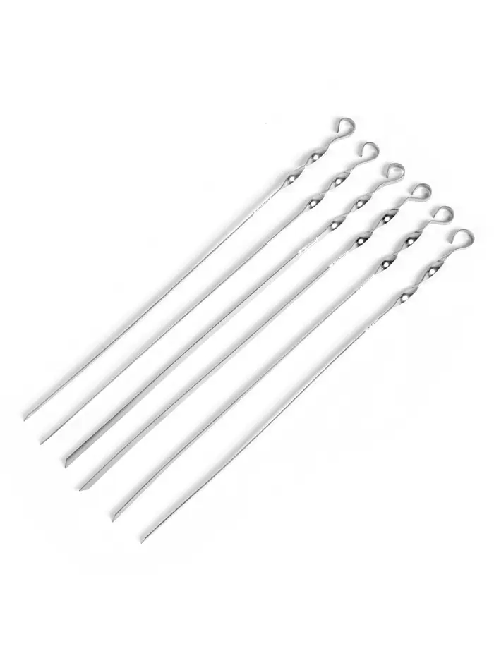 Шампуры изготовлены из нержавеющей стали, устойчивой к коррозии, высоким температурам и механическим воздействиям. Прямая форма обеспечивает удобное размещение продуктов и равномерное приготовление.