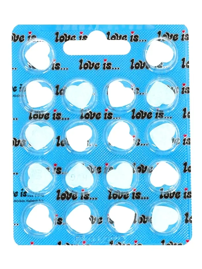 - Драже LOVE IS… в блистере 10.8 г: Вес упаковки – 10.8 граммов. Компактный формат позволяет положить конфеты в конверт с валентинкой, прикрепить к букету или использовать как дополнение к основному подарку.