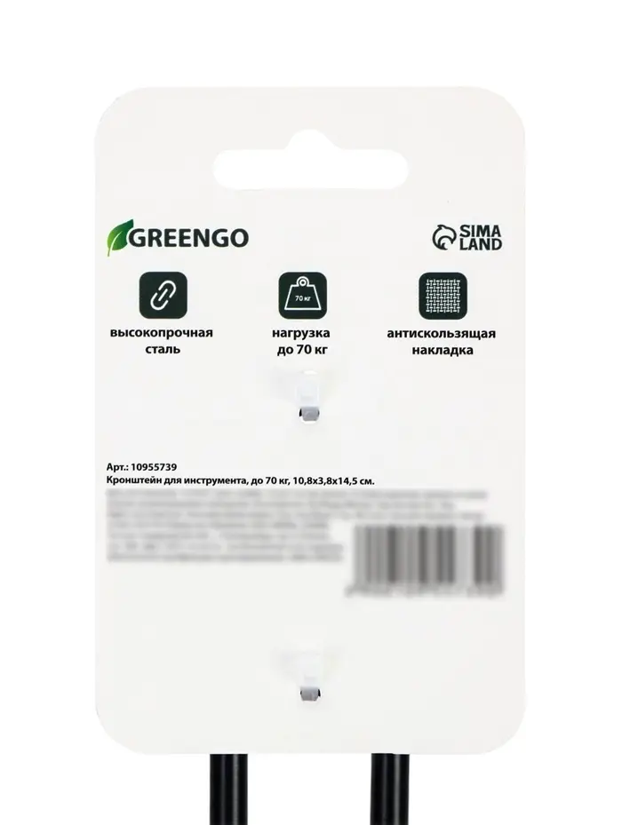 Держатель для садовых инструментов Greengo, 10×3.8×14.5 см — компактный настенный кронштейн для хранения инвентаря в гараже, мастерской или на даче. Металлическая конструкция фиксируется на стене и помогает организовать пространство, освобождая пол от инструментов.