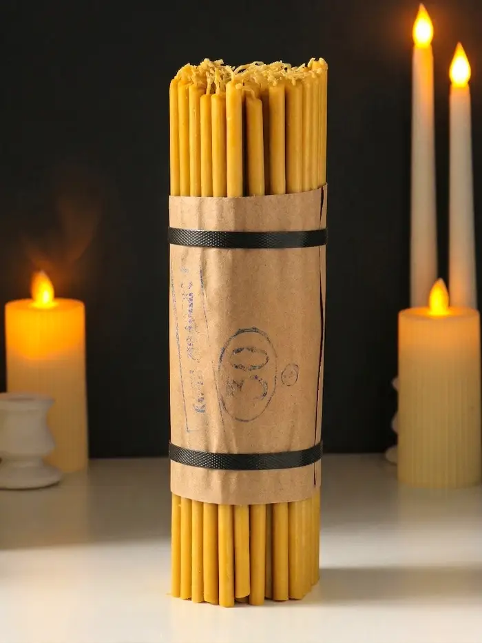 Мягкий свет и тонкий медовый аромат этих свечей превращают обычный вечер в момент тихой радости и умиротворения. Они станут гармоничным дополнением к молитве, семейному ужину или романтическому настроению. Набор церковных свечей — это готовое решение для создания особой атмосферы, где каждая деталь продумана для вашего комфорта.