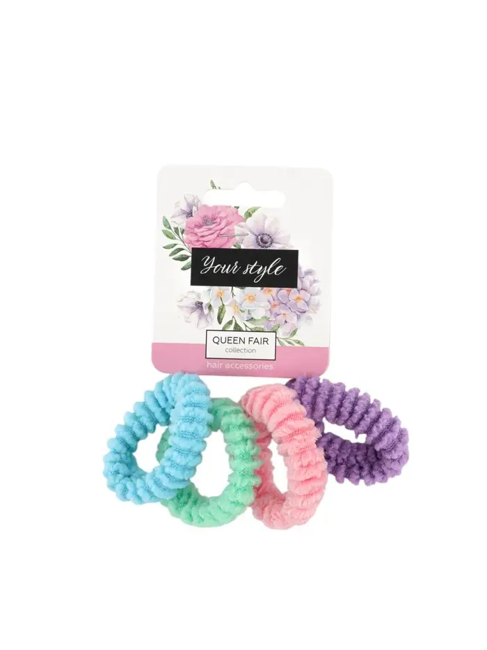 - Набор из 4 резинок в микс цветов: В упаковке вы найдете сразу четыре резинки в нежных, гармонирующих оттенках. Такой комплект подойдет под разную одежду и настроение, а также поможет никогда не терять нужный аксессуар — одна всегда будет под рукой.