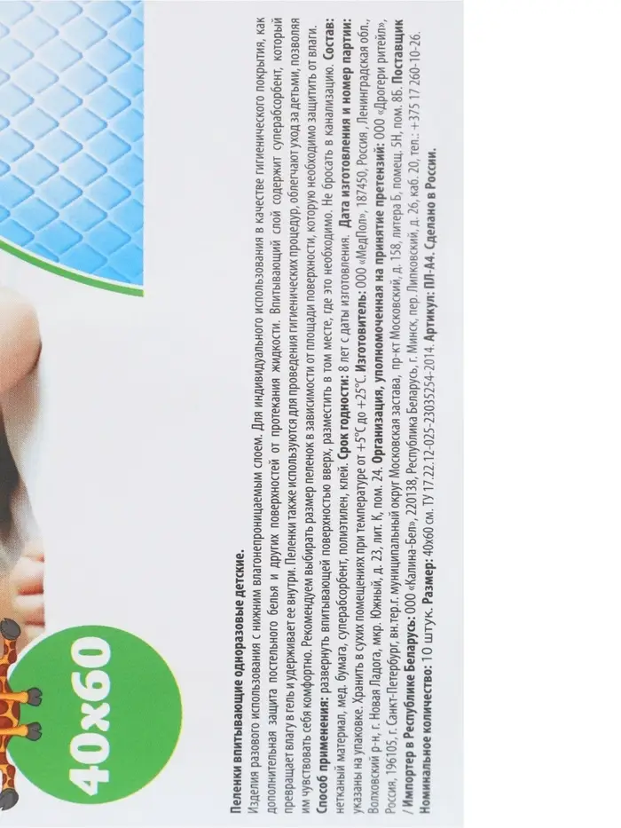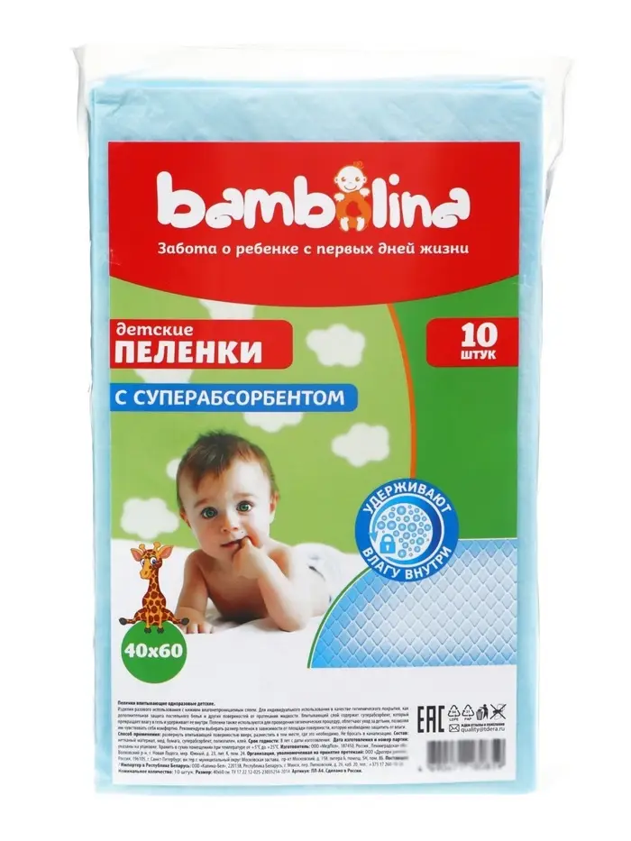 Пеленки для детей Bambolina 40×60 см, 10 шт.