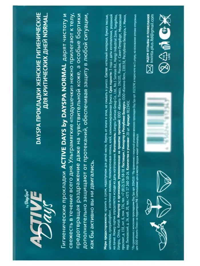 Прокладки Day Spa Active Days нормал, софт, 20 шт.
