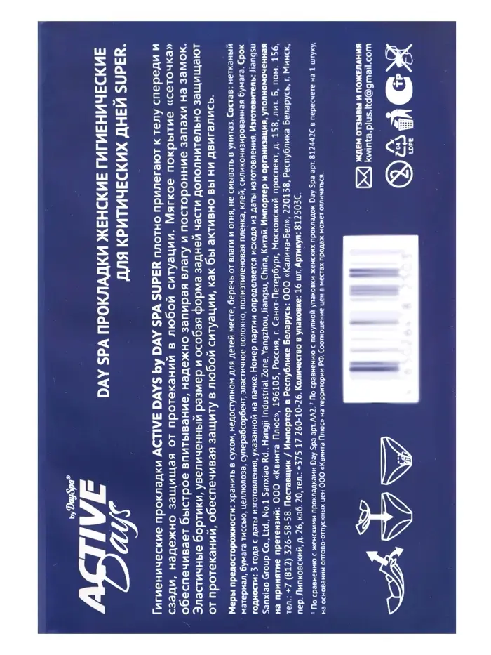 Прокладки Day Spa Active Days супер, сеточка, 16 шт.