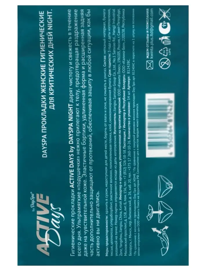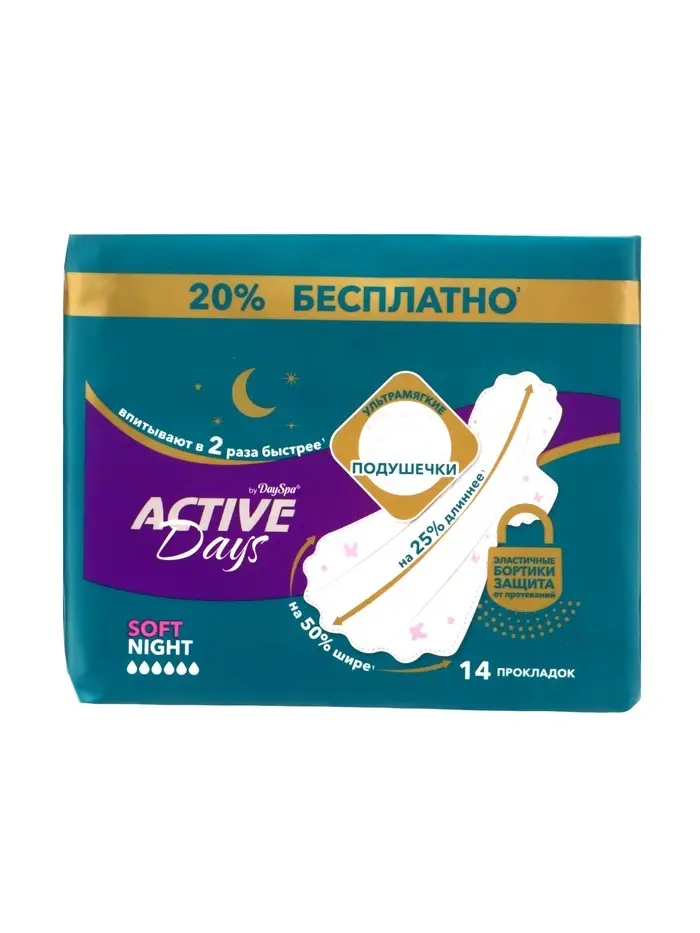 Прокладки Day Spa Active Days ночные, софт, 14 шт.