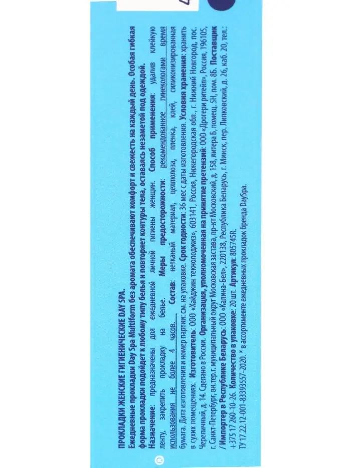 Прокладки ежедневные Day Spa, мультиформ Air, без запаха, нормал, 20 шт.