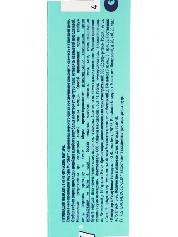 Прокладки ежедневные Day Spa, мультиформ, аромат бриз, ультратонкие, 20 шт.