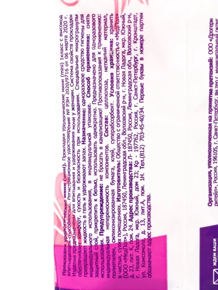 Прокладки урологические mini Day Spa Simple lady, 10 шт.