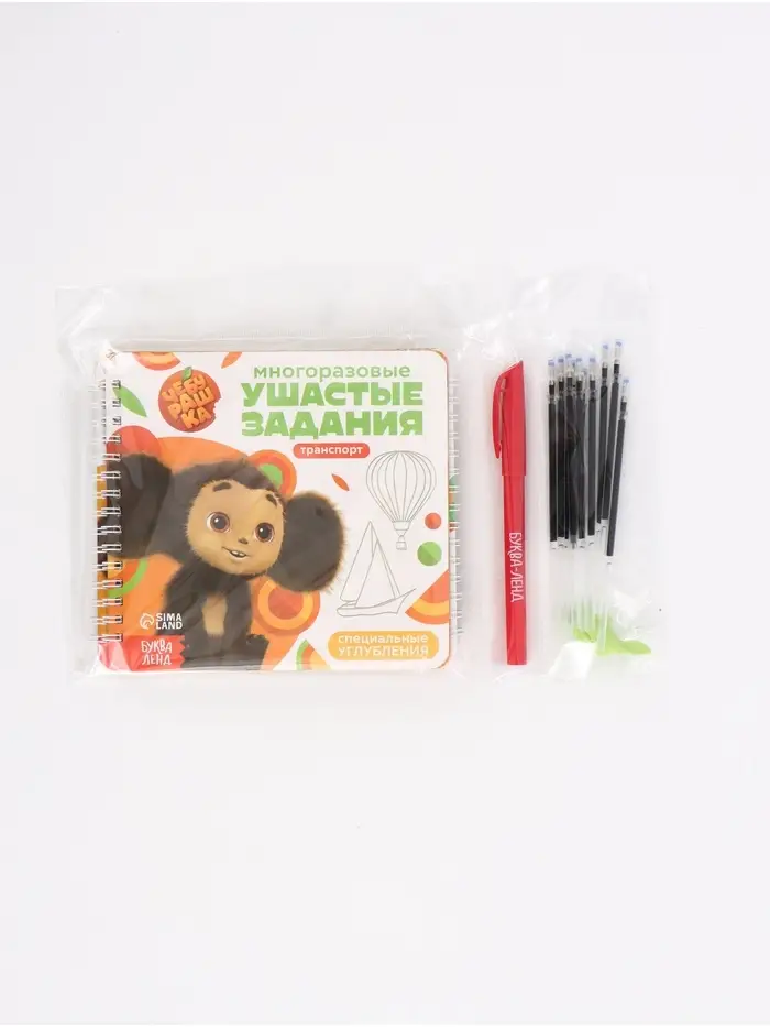 Набор многоразовых прописей с углублениями «Ушастые задания. Чебурашка», 12 стр., 4 книги в наборе