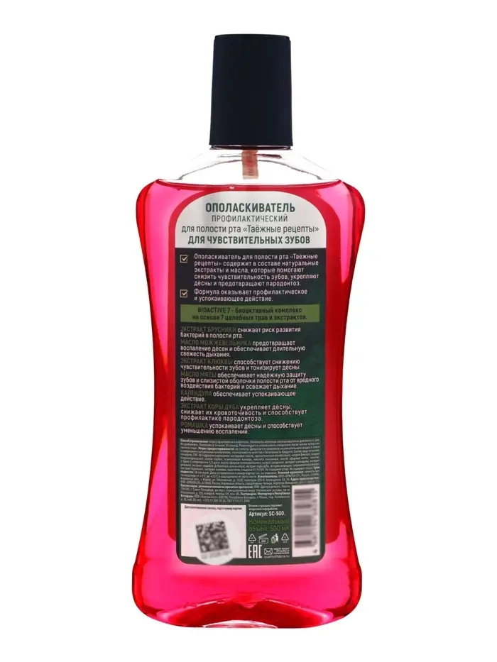 Ополаскиватель для рта Таёжные рецепты, для чувствительных зубов, 500 мл