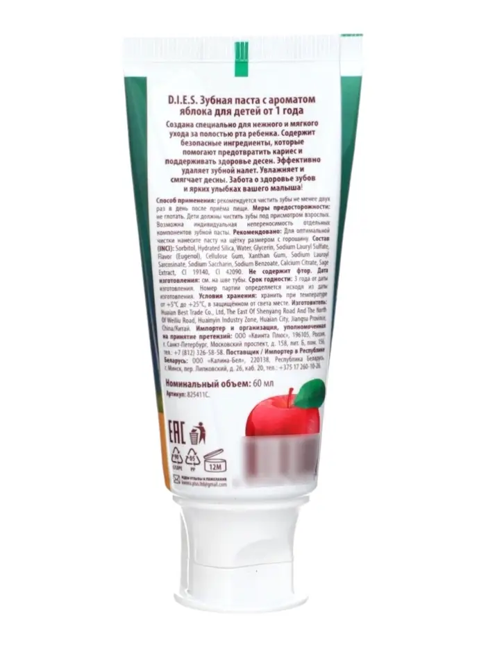 D.I.E.S. для детей зубн. паста Спелое яблочко от 1 года 60 мл