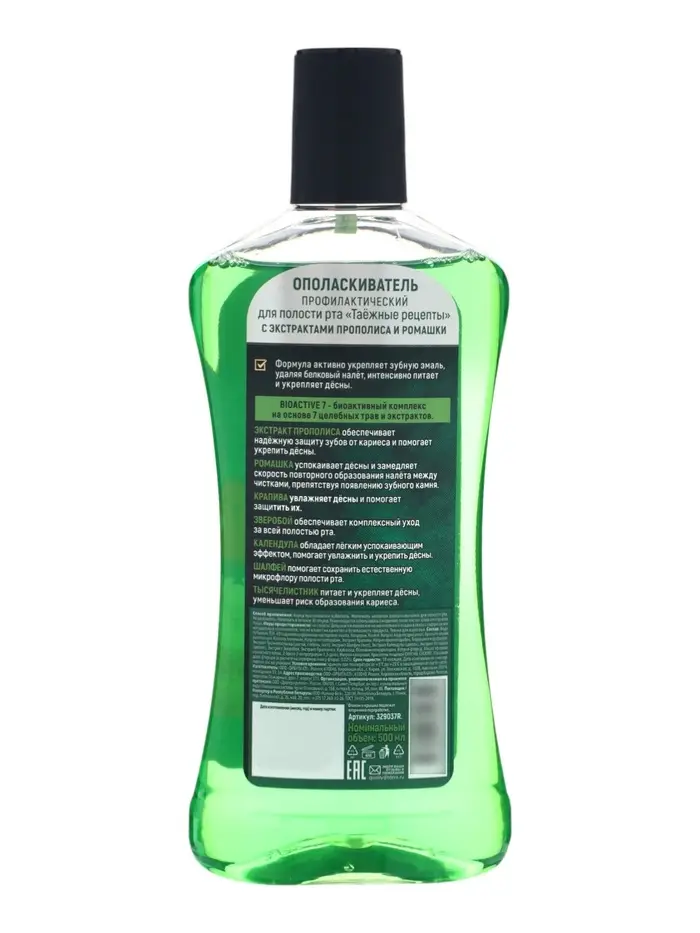 Таёжные рецепты ополаскиватель для рта с экстрактами прополиса и ромашки 500 мл