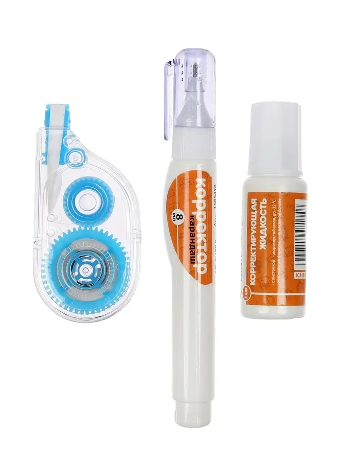 Набор корректоров Calligrata «3 в 1» — удобное решение для аккуратных исправлений в тетрадях, конспектах и документах. В одном комплекте собраны разные форматы коррекции, поэтому под рукой всегда есть подходящий инструмент для любой ситуации: от точечных правок до быстрых линий.
