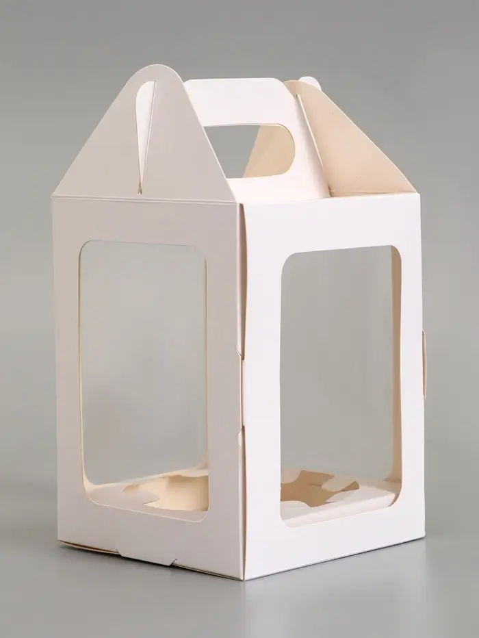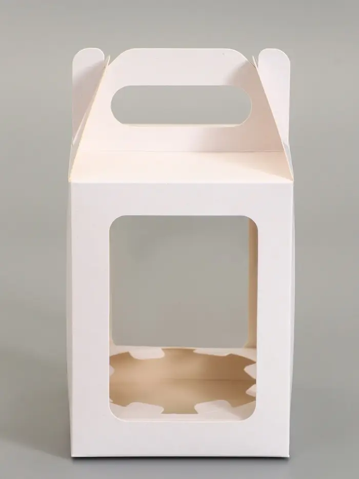 Покажите содержимое во всей красе. Белая картонная коробка с окошком для кондитерских изделий, 13×13×16 см – аккуратная упаковка для тортов, куличей, маффинов и пирожных. Плотный картон 250 г/м² держит форму, а прозрачное окно демонстрирует содержимое без вскрытия.