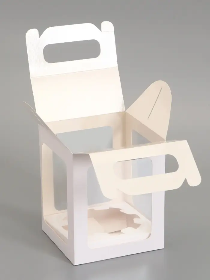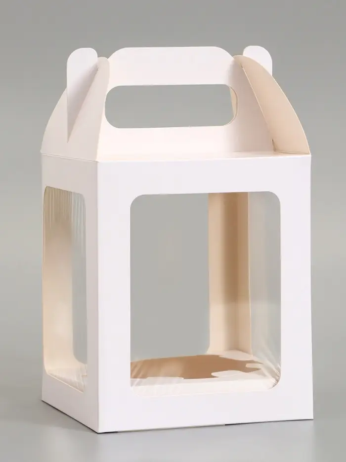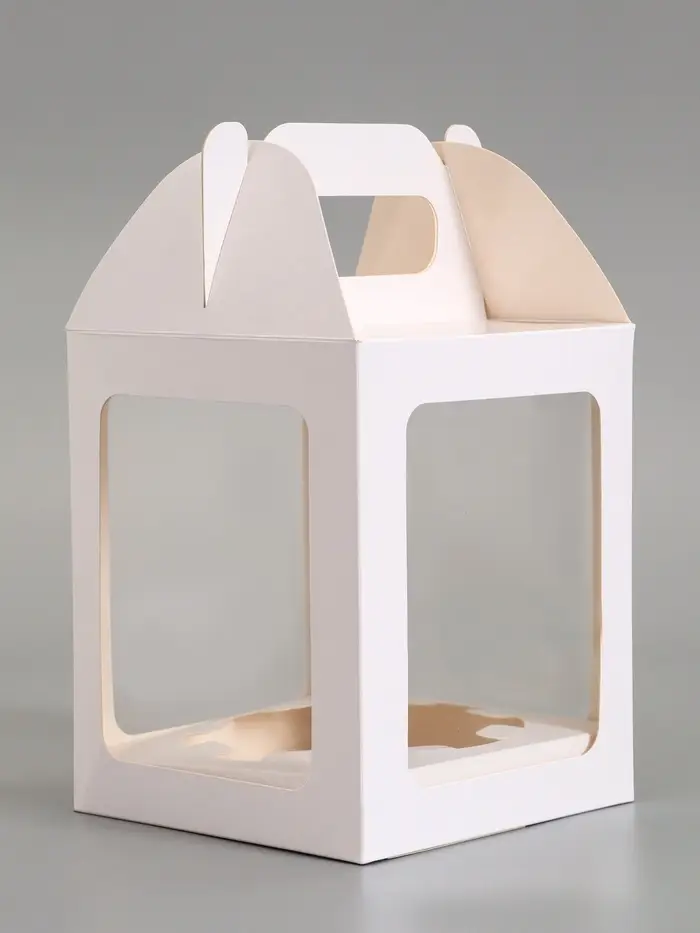 - Прозрачное окно из плёнки – удобство для презентации: Видна глазурь, посыпка и декор. Не нужно открывать крышку, чтобы оценить внешний вид. Окно защищает выпечку от пыли и случайных прикосновений.