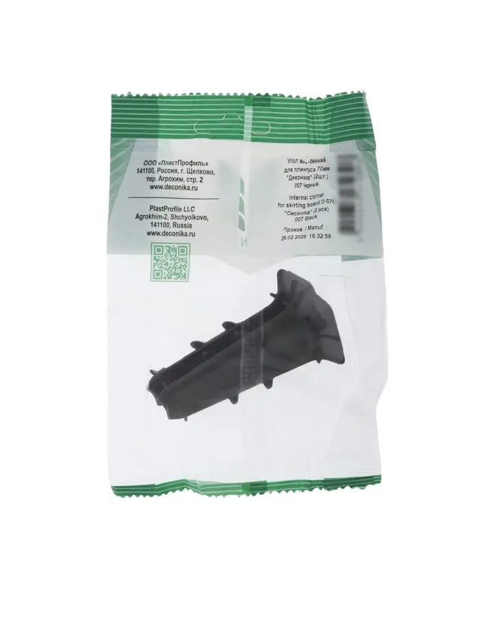 Угол внутренний для плинтуса «Деконика» 70 мм, 2 шт., цвет 007 черный
