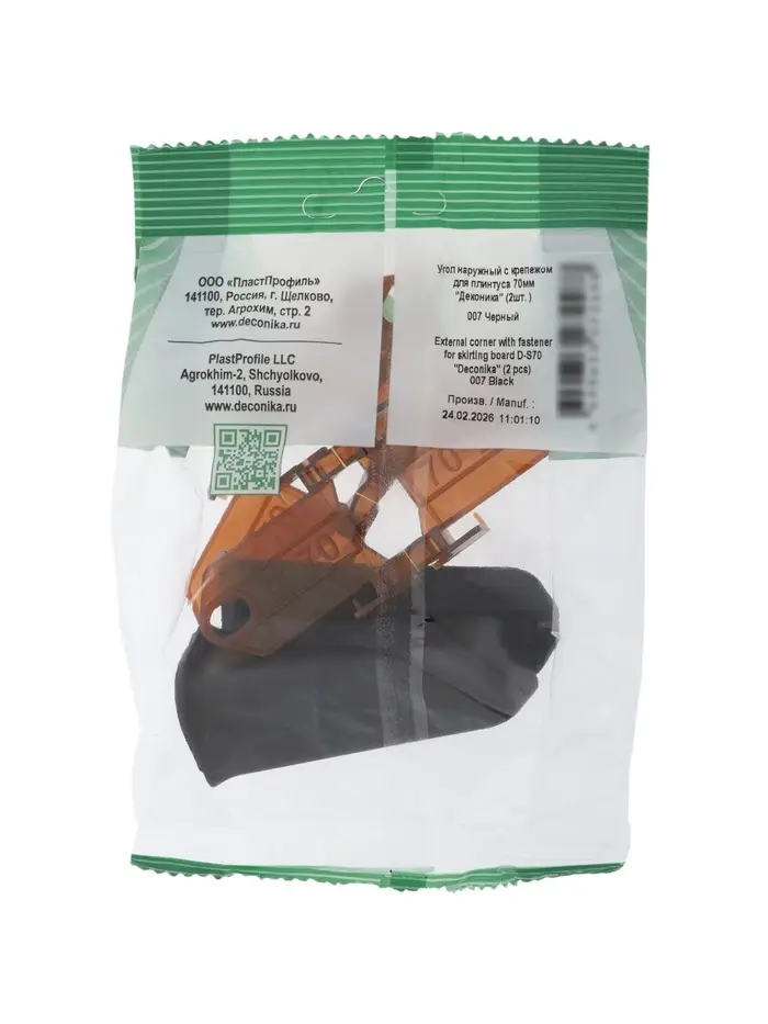 Угол наружный для плинтуса «Деконика» с крепежом 70 мм, 2 шт., цвет 007 черный