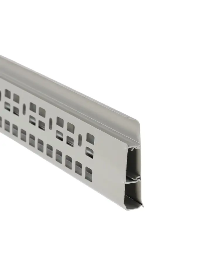 Плинтус изготовлен из ПВХ — материала, устойчивого к влаге, износу и механическим воздействиям. Конструкция состоит из монтажной части и декоративной панели, благодаря чему крепеж остается скрытым, а внешний вид — аккуратным. Внутренний кабель-канал позволяет прокладывать провода без дополнительной штробления стен.