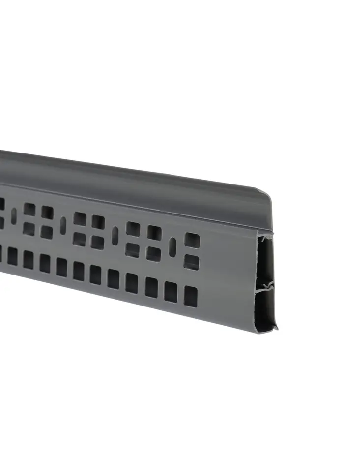 Внутреннее пространство позволяет прокладывать кабели, скрывая провода без дополнительной подготовки стен. Длина 2200 мм уменьшает количество стыков при монтаже и ускоряет работы. Цвет 548 лофт серый универсален и хорошо сочетается с различными напольными покрытиями.