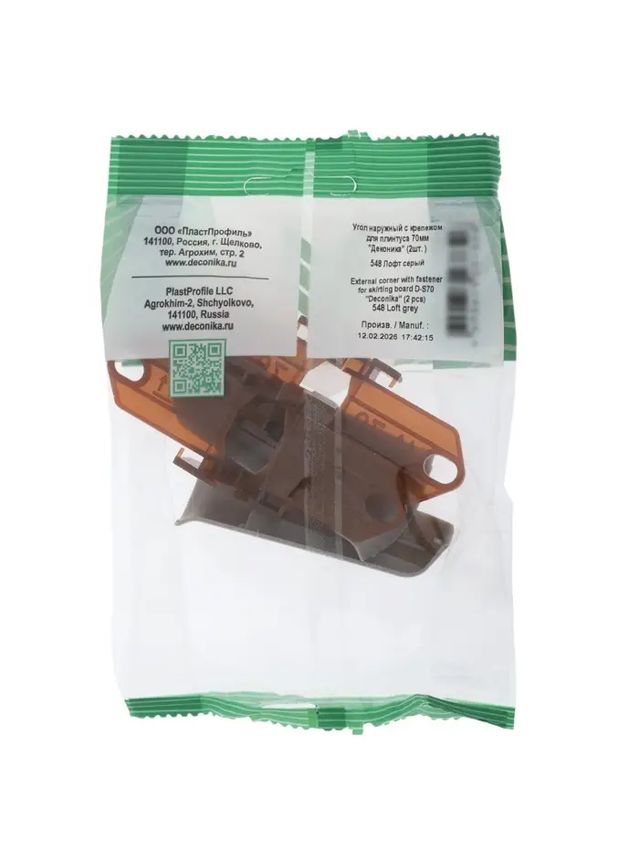 Угол наружный для плинтуса «Деконика» с крепежом 70 мм, 2 шт., цвет 548 лофт серый