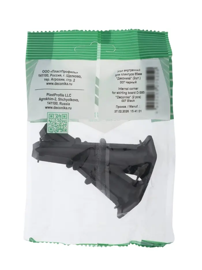 Угол внутренний для плинтуса «Деконика», 85 мм, 2 штуки, цвет 007 чёрный