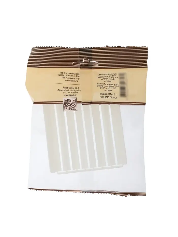 Накладки для прямоугольного плинтуса «Идеал. Дюра», 80 мм, 8 штук, цвет 001 белый