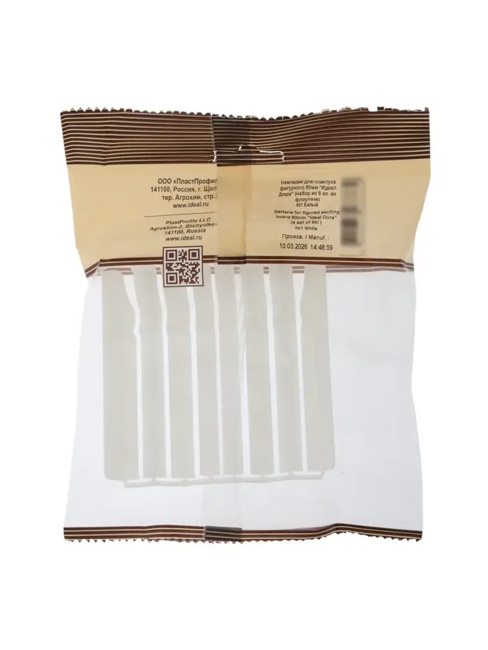 Накладки для фигурного плинтуса «Идеал. Дюра», 80 мм. 8 штук, цвет 001 белый