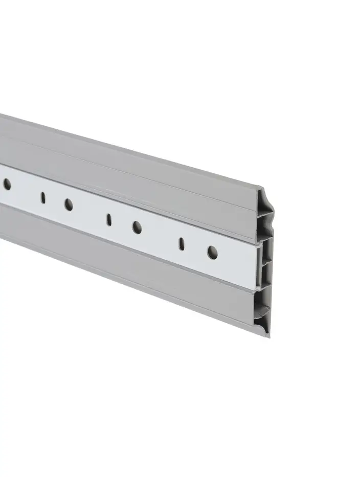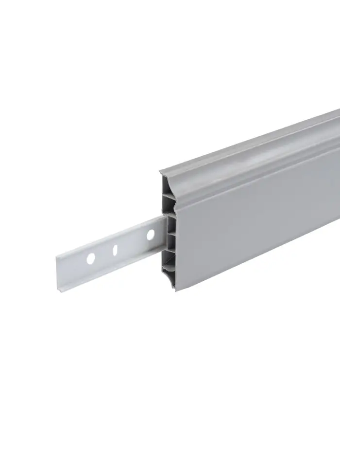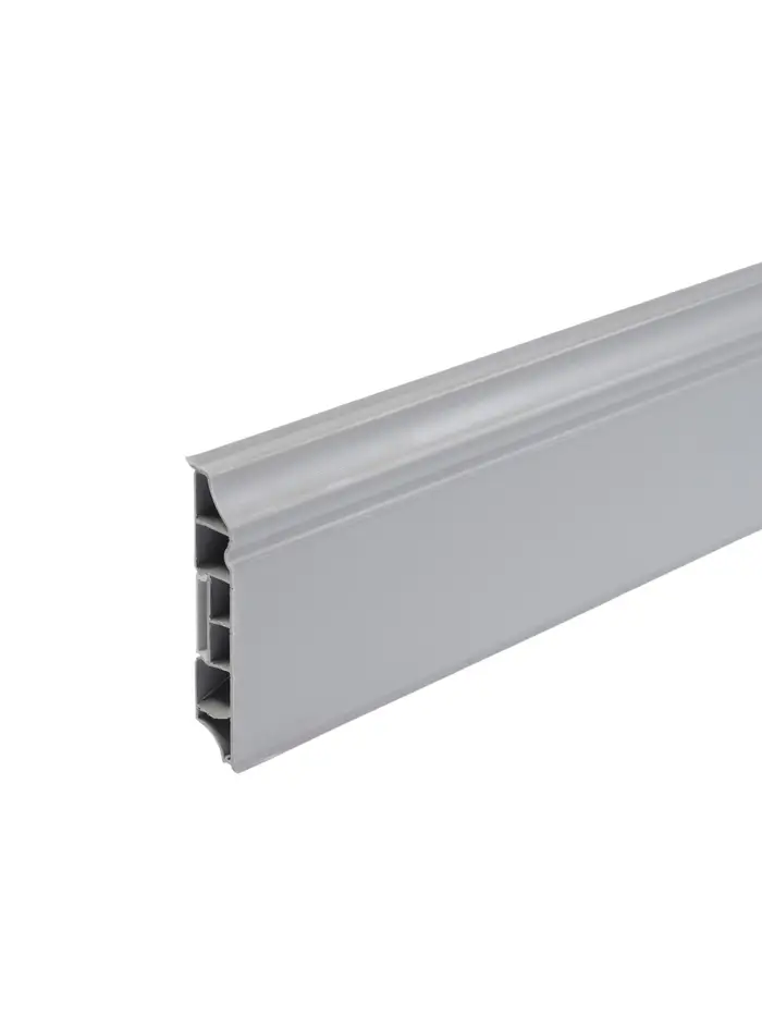 Длина 2200 мм удобна для монтажа с минимальным количеством стыков. Светло-серый цвет универсален и легко сочетается с различными напольными покрытиями — от ламината до плитки, вписываясь в современные интерьеры.