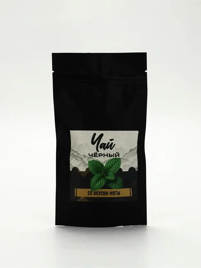 Листовой чай чёрный с мятой: чай чёрный байховый, мята.
