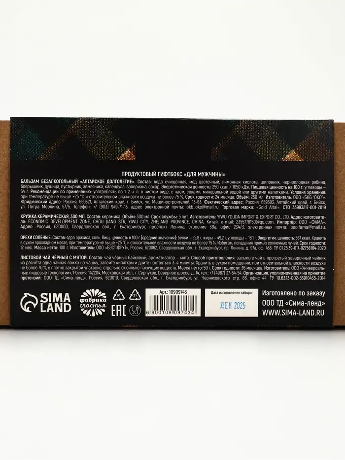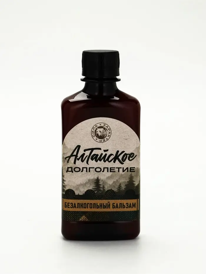 Бальзам безалкогольный «Алтайское долголетие»: вода очищенная, мёд цветочный, лимонная кислота, шиповник, черноплодная рябина, боярышник, душица, пустырник, земляника, календула, валериана, сахар.