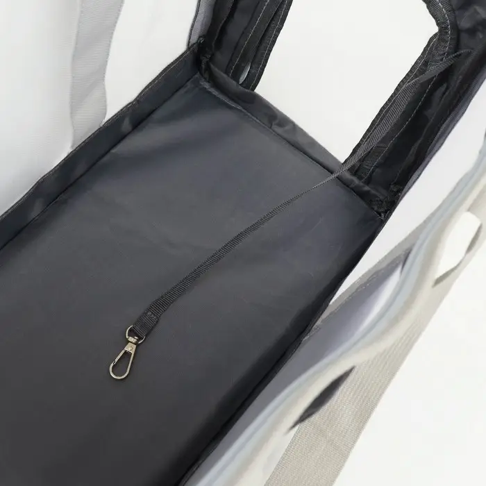 В дно переноски вшит плотный картон, чтобы усилить ее жесткость и обеспечить дополнительную поддержку для животного.