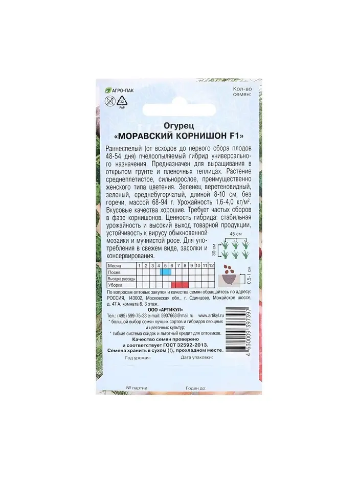 "Огурец Моравский корнишон F1 - это гибридный сорт огурцов, который отличается высокой урожайностью и прекрасным вкусом. Этот сорт был выведен специалистами селекционной компании и является одним из наиболее популярных среди садоводов и огородников.