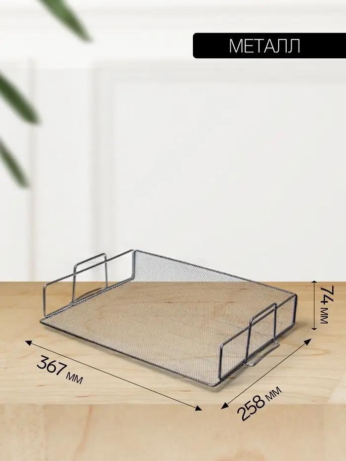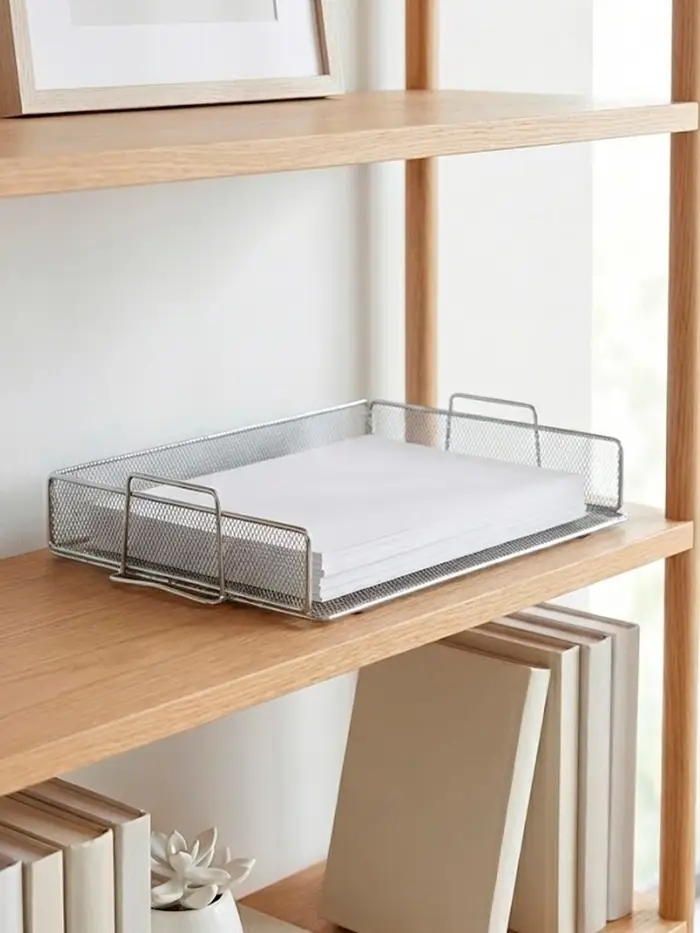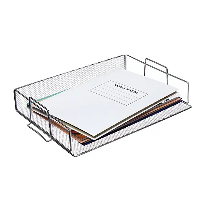Добавьте на ваш стол элемент современного стиля и прочности. Этот горизонтальный лоток из серебристой металлической сетки создаёт чёткое место для документов, папок или журналов. Его открытая конструкция не выглядит громоздкой, а прочный металл гарантирует, что даже внушительная стопка бумаг будет надёжно зафиксирована.