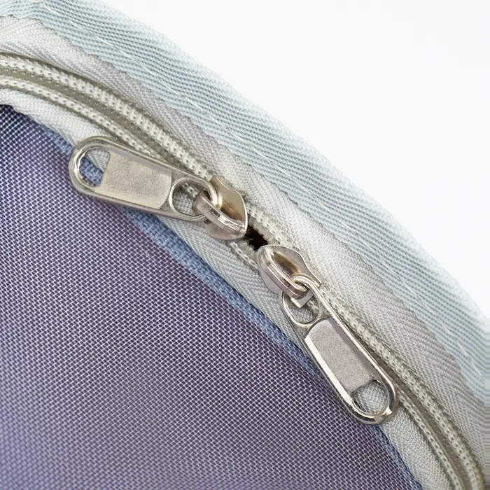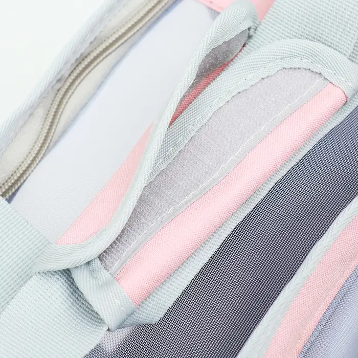 Выполнена из мягкого и прочного материала, имеет сетку для проветривания, которая обеспечивает свежий воздух и комфортную температуру внутри, а также удобную ручку для переноски.