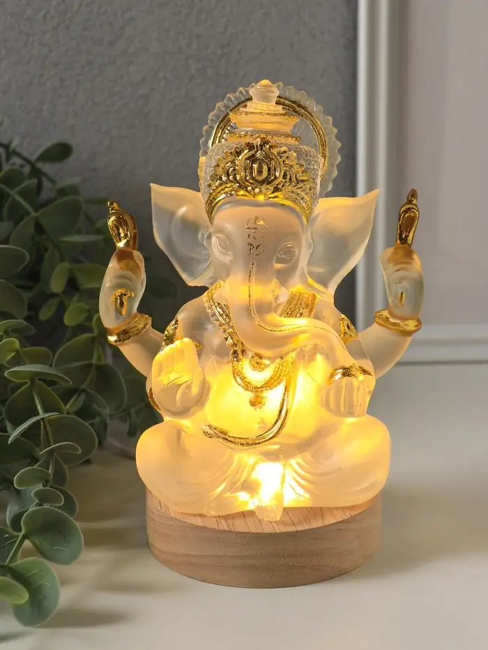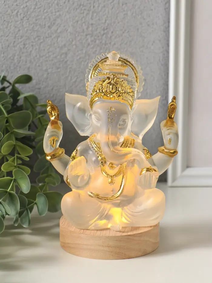 Сияющее божество Ганеша садится на ваше рабочее место и тихо подсвечивает комнату мягким хрустальным светом. Акриловый корпус пропускает лучи, словно это стеклянный храм, а встроенный USB-разъём превращает ноутбук в портативную святыню.