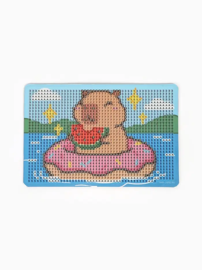 Ребёнку предстоит разложить кристаллики карандашом по пронумерованной схеме, заполнив всё полотно. Основа с клеевым покрытием будет надёжно удерживать стразы. На ней уже обозначены необходимые оттенки.